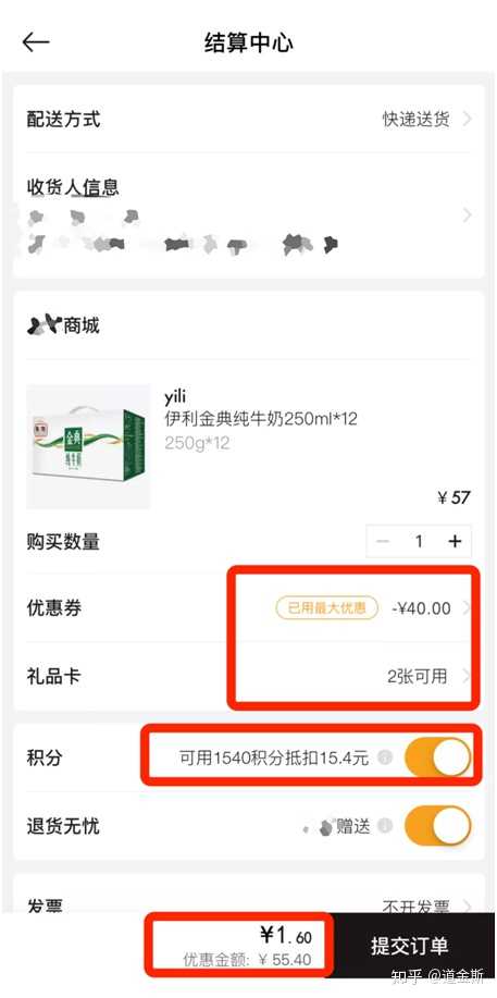 金典牛奶,看上面的价格没意义,你们猜猜最后买到手的价格是多少?