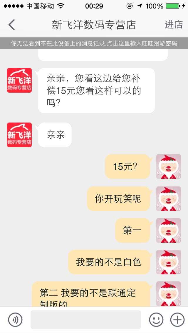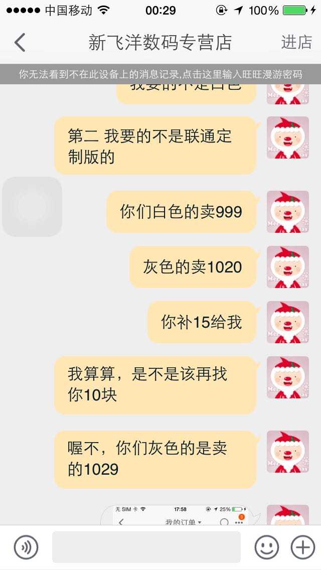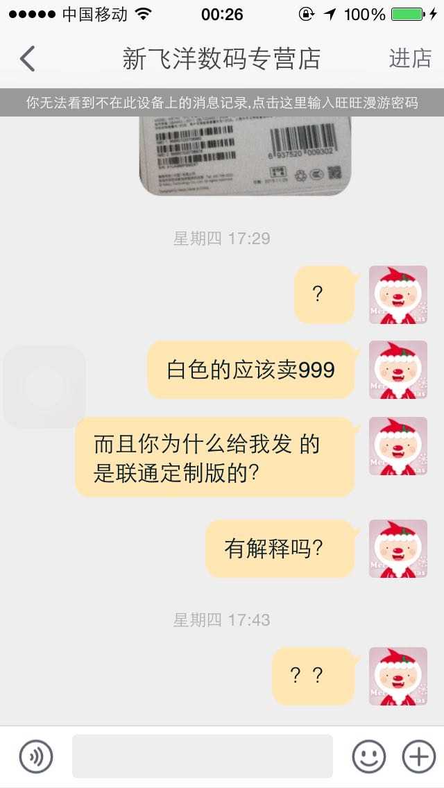 打红圈的地方是关键,因为店铺宣传是卖的公开版,而我拿到的是!!合约机!没错!!这是一个反盘点!这可是淘宝做生意的大忌啊!描述与宝贝不符!!描述与宝贝不符!!