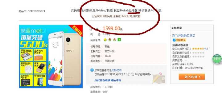 后来发现这家店铺的宝贝规范了不少,至少我买的那个魅蓝手机的宣传标题上和宝贝详情上没有出现公开版三个字。希望各位看客可以从我的真实故事里得到一些启发和帮助。