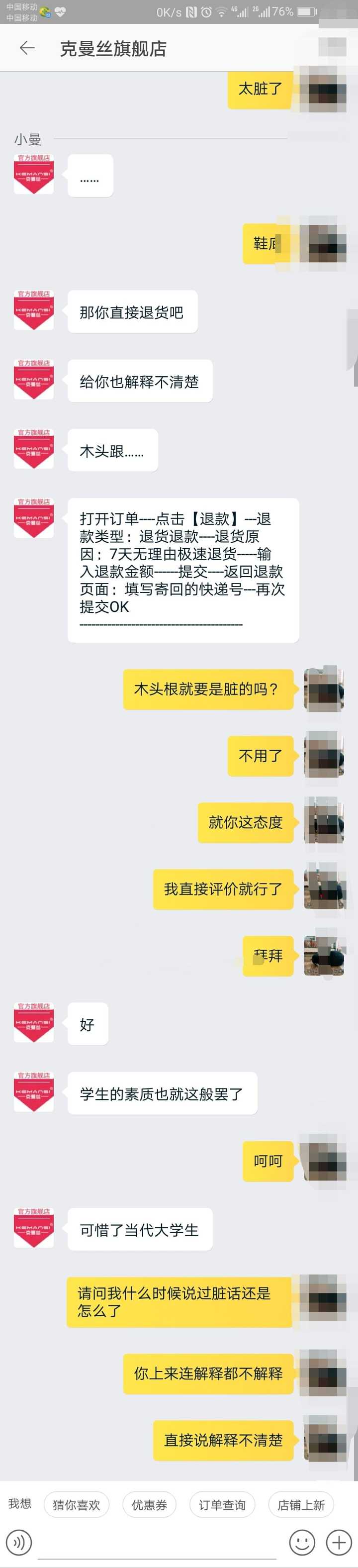 哈哈哈我就是想语气硬一点把事情解决了。特意把店名给马赛克了,我觉得把店名都发出来有点不厚道。