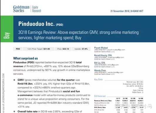 或许正是得到了竞争对手的认可,摩根士丹利、高盛、瑞银、瑞信等众多国际机构纷纷给与拼多多“买入”、“增持”的评级。
