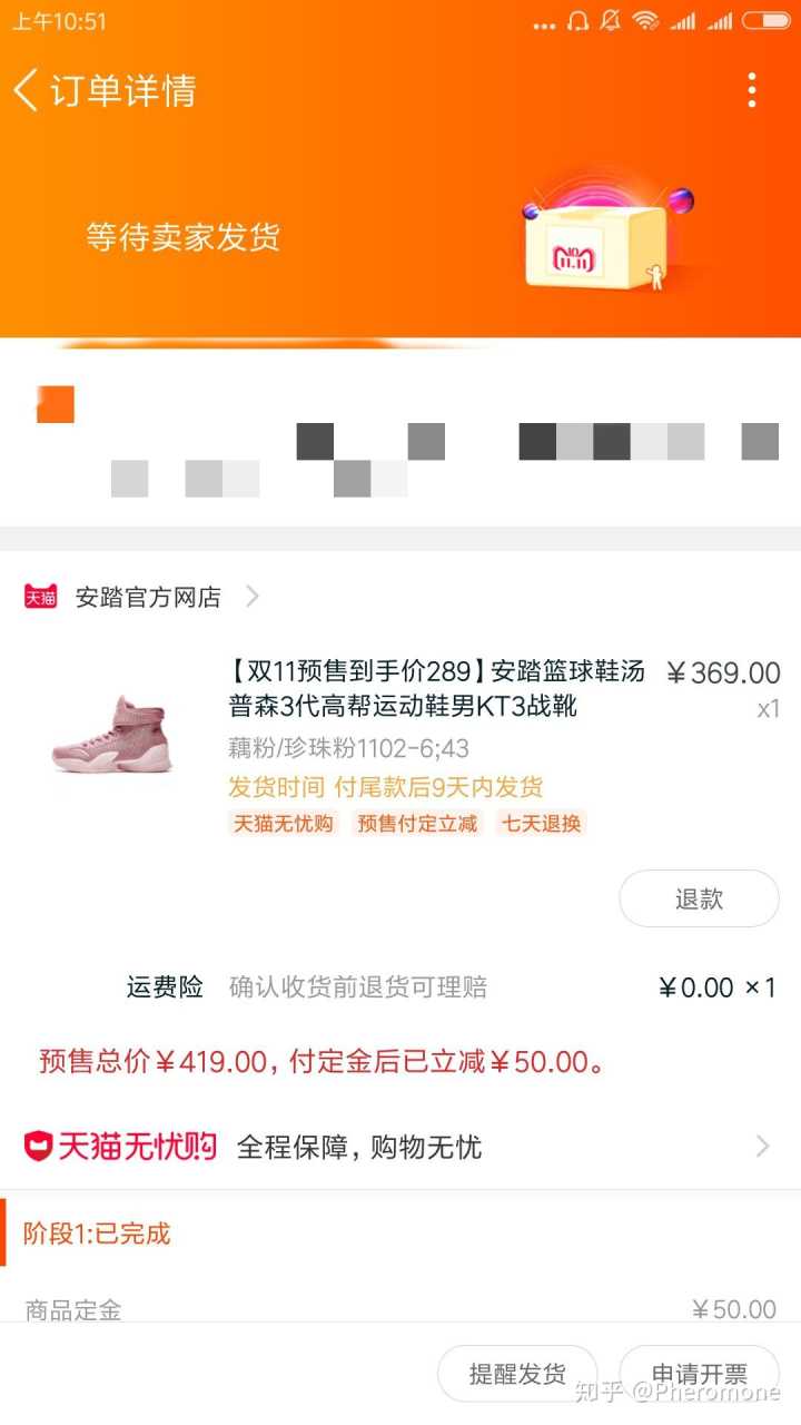 首先这是我买的鞋子,到手价289的kt3,确实让人心动(虽然他用了文字游戏,巧妙的把我的定金50给去了)