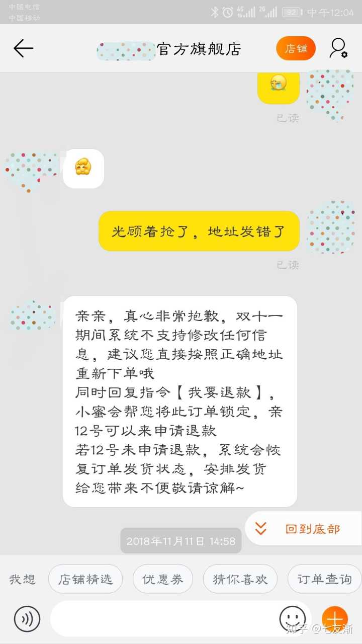 7. 双十一不就是有些店家刷单用的吗?双十一买点纸尿裤还买出火气来了,这家店自己搞得活动,自己不承认,打电话骗买家退款,退款选项只有一个,就是买家不想要,买家好好问他为什么不发货,恶言以对,然而买家投诉无门啊!对淘宝有点失望,话说感觉我下面这种店家有很多吧,自己给的优惠券还不承认,不发货,拖着,对买家恶言相向,鬼知道双十一里面有多少这样的店家,有多少水分,我决定以后转战京东,苏宁,唯品会了,淘宝用着生气,感觉也没便宜多少,另外的平台也打折的,起码人家亏不起的时候打电话过来都好声好气的,没有这么直接骂买家的