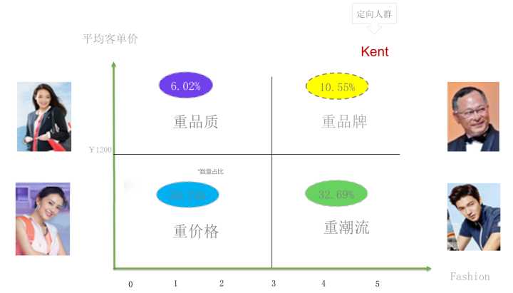 数仔这边以用户 Kent 为例,过往数据显示,他的 Y 轴(客单价)为 2194 元,同时 X 轴( Fashion)在 4.3 左右,由此可见 Kent 是一个注重品牌的用户。在得出这个结论后,我们就可以针对这点进行营销活动策划。