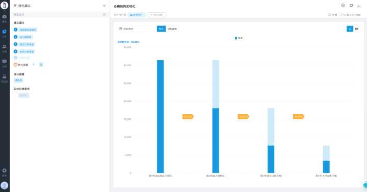 5、销售转化数据:分从下单到支付整个过程的数据统计,可以帮助运营人员提升商品转化率。