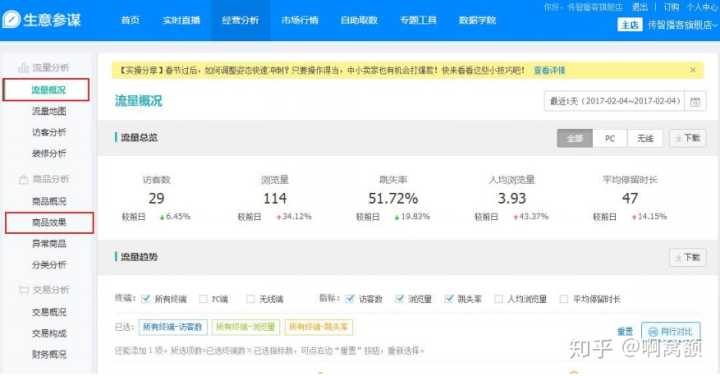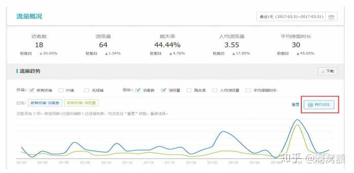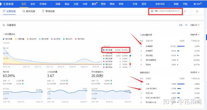 像跳失率,人均浏览量,平均停留市场。只要箭头向上或有一点向下波动不大都不用太在意,真正你要在意的是右下角的关键词以及转化率!