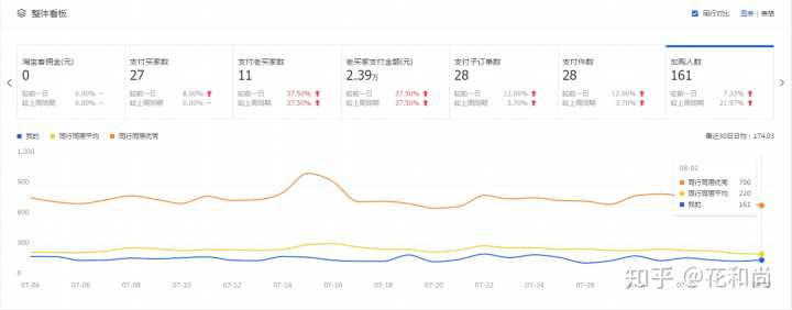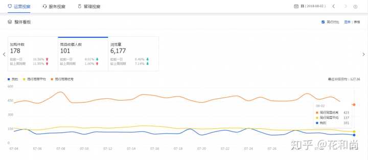 现在又知道了自己每天的加购人数,同行同层平均的加购人数,优秀水平的加购人数。