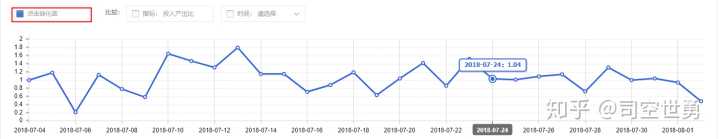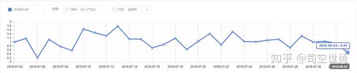 转化率分析:从图上可以看见,整体的转化率在1.04左右波动,慢慢的到昨天跌入了0.49,是不是转化率就真的在下滑呢?