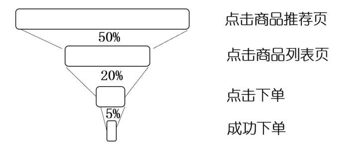电商产品运营网站或APP上的北极星指标通常为支付订单次数,从启动(着陆)到支付订单的全流程就是订单流。下图是我们需要的漏斗可视化报表,希望通过这个漏斗看到用户在不同行为之间的转化率及流失情况。