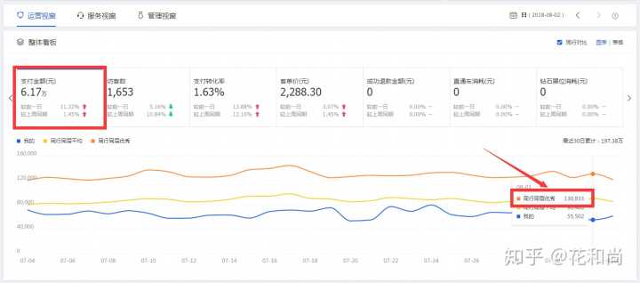 另外还可以看到访客数,同行可以看到你与同行同层平均和优秀水平的差别。