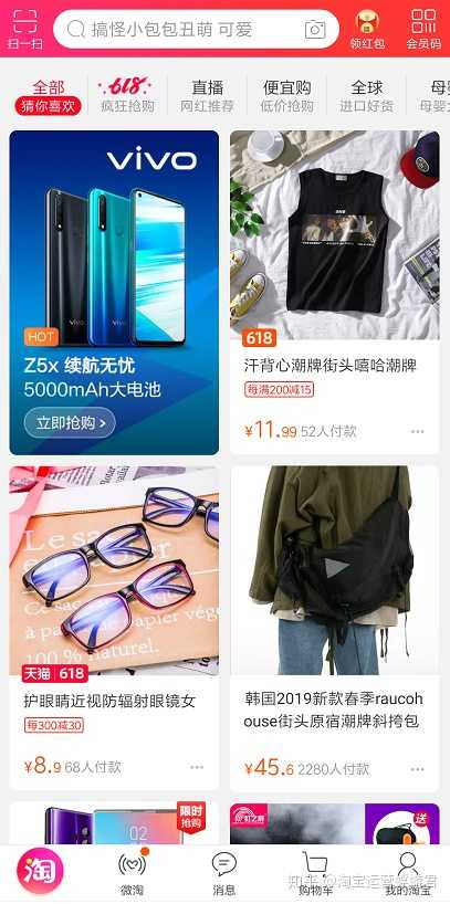 我们可以在手淘中看到,带有“HOT”标签的产品,这种产品是通过直通车推广产生的。也就是通过投直通车为我们带来的猜你喜欢的手淘首页流量。