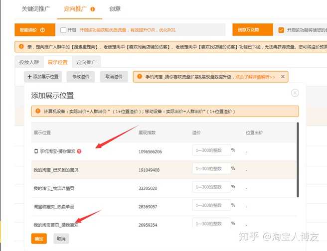 操作方法已经截图分享,定向直通车能获取多少流量,无论是前期还是后期,都是取决于智能投放,这个出价根据经验之谈可以先出到关键词推广平均价格,展示位置先开,猜你喜欢位置先开手机淘宝猜你喜欢,和淘宝活动中,图中已经标出。