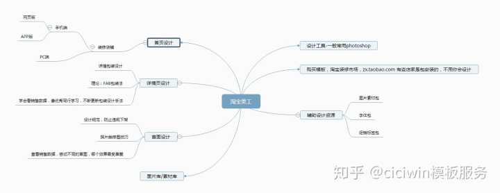 如果你想往美工方向发展,我给你画了个脑图,里面包含了常规技能,日常工作,辅助工具。
