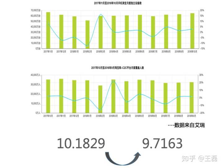 从2017年10月到2018年9月,淘宝的十亿终端不但没有增加,反而下降到了9.7万.这不怪马云爸爸,主要是强东和多多们太强势,pc端淘宝在和京东亚马逊苦战,移动端也被拼多多步步紧逼.
