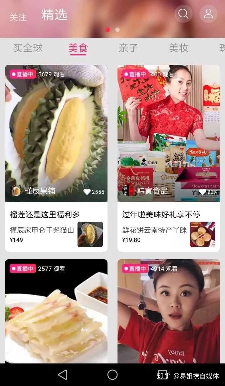 曾蜗居在手淘版块里的淘宝直播,强大的销货能力有目共睹。如今打开APP,5条直播链接浮现在APP首页,往下滑,则是“精选”、“春节”、“美食”、“穿搭”等12个子类目,分类清晰可见。