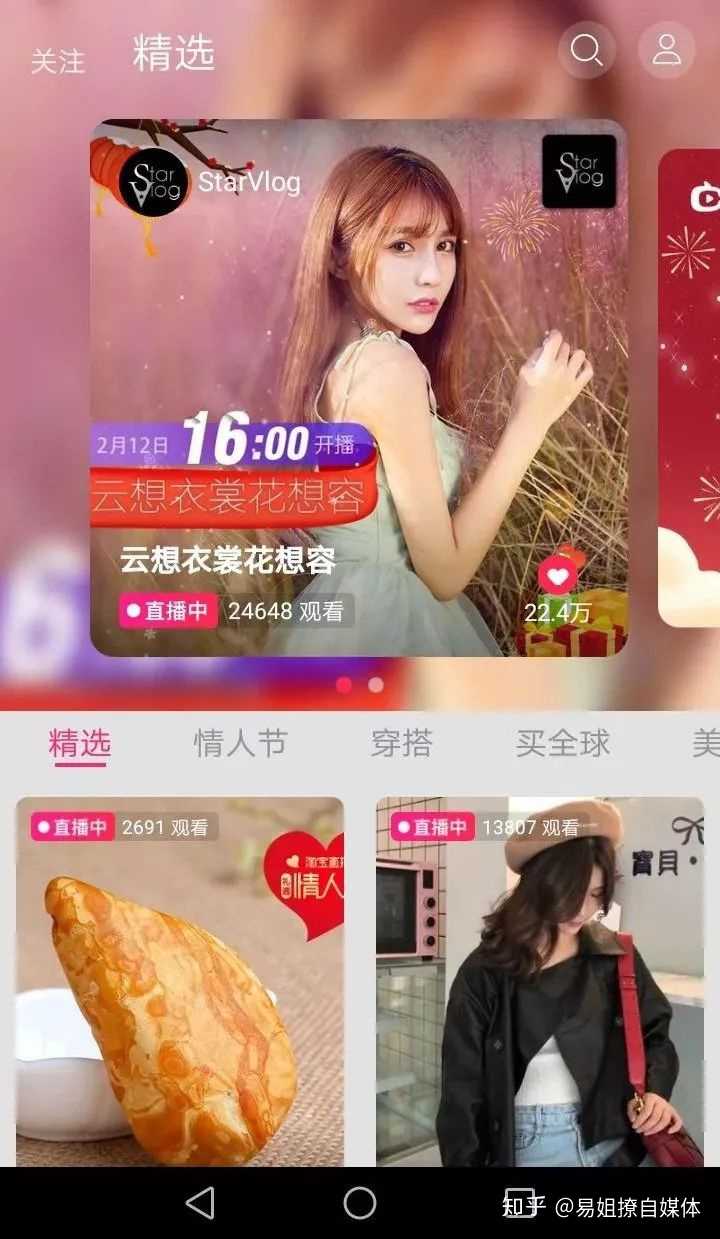 淘宝直播是阿里巴巴推出的直播平台,定位于“消费类直播”,用户可边看边买,涵盖的范畴包括母婴、美妆等。