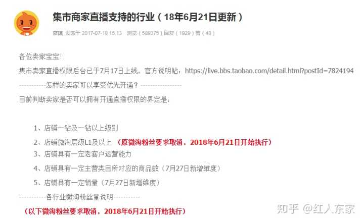 我们来看看淘宝官方论坛公布的开通直播权限要求。