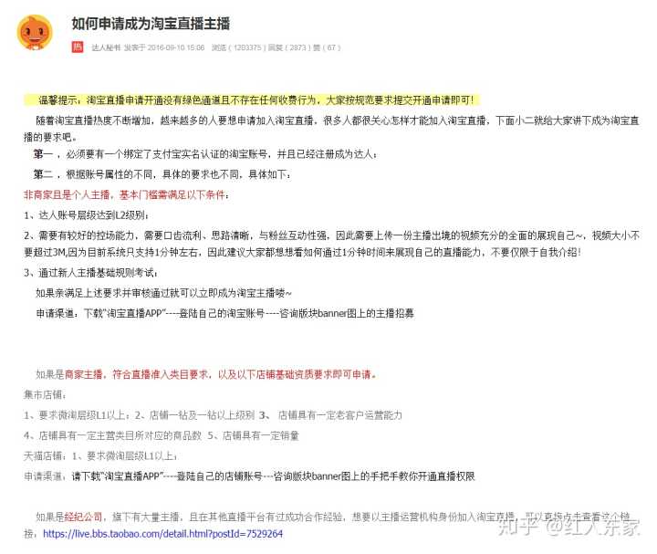我们来看看淘宝官方论坛公布的开通直播权限要求。