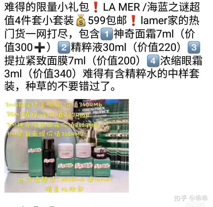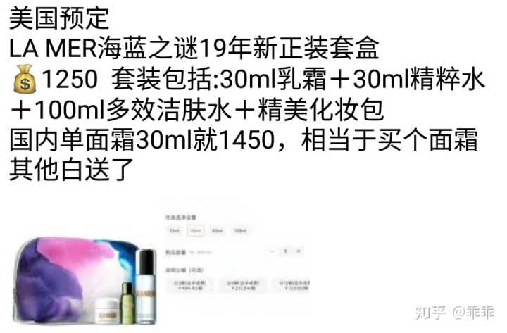 而且美国的la mer还经常会有一些超值的小套装 ,基本上会涵盖整套护肤流程所需要的所有护肤品,很适合想要用la mer 但是一次性备齐又有点肉痛的小仙女,并且套装价和单买相比确实会便宜很多。
