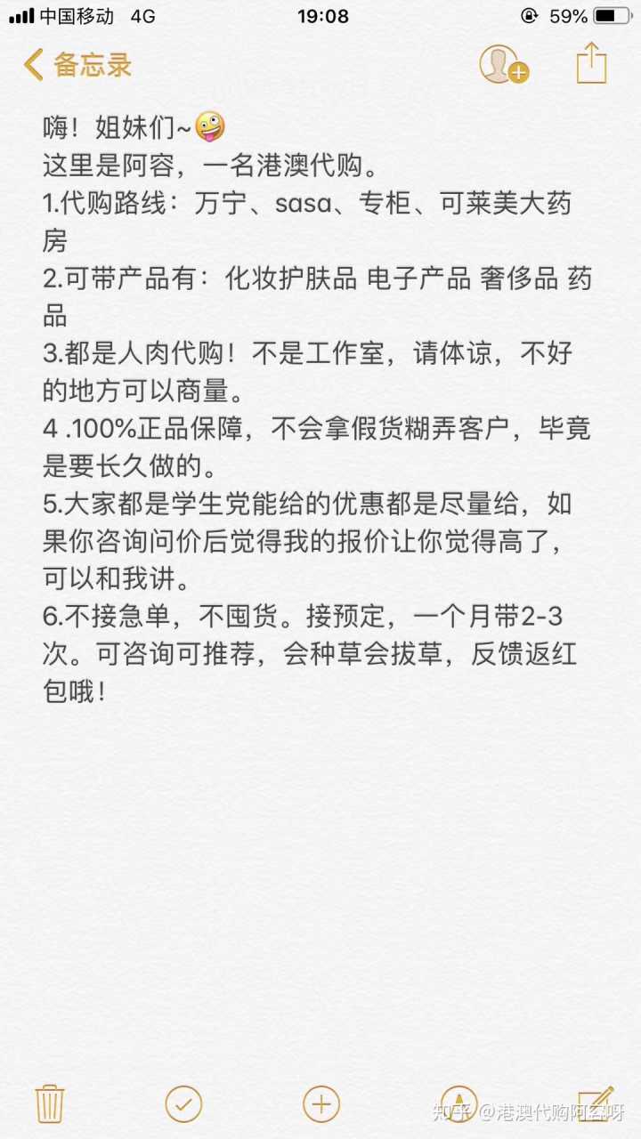 我呀,香港代购,我贼靠谱,你可以观察我几个月再买东西哈哈哈,不过我文案不行,在这里不知道要说啥,反正我就贼靠谱。