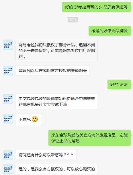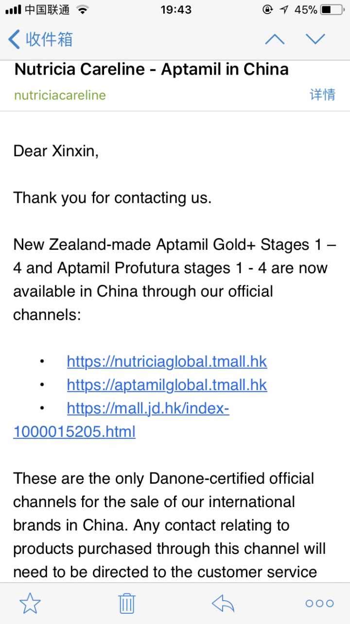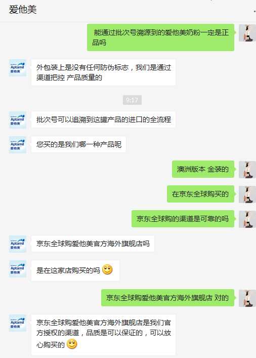 得到的回复是天猫的纽迪希亚海外旗舰店 爱他美海外旗舰店 还有京东全球购的爱他美海外旗舰店 这几个渠道是官方的