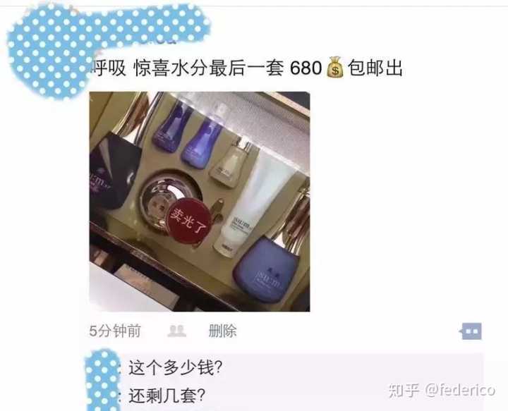我一高中同学找我买东西,问了一圈价格后就太监了。然后过个一个月又来找我,说要买上次问的水乳套盒,这时候已是秋天,代购都知道,天气越冷,护肤品涨价越厉害。于是我就给她报了价格,她嫌贵,还说:“上次怎么不是这个价啊?”
