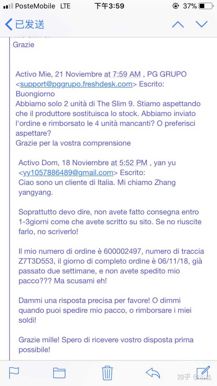 于是我18号又发了一封!我在里面说了他们没有做到跟网站上写的一样在1-3天内发出包裹!要么给我退款!要么马上给我发包裹!