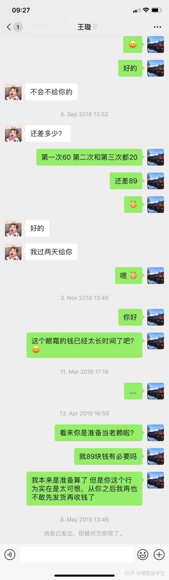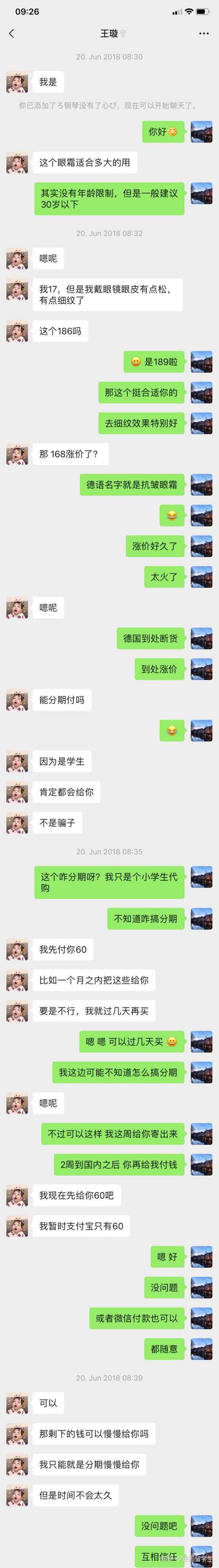 长话短说:客户买个189的眼霜,说自己是学生,要问能不能分期,说一定不会少钱的!我想着应该没有人会因为189RMB耍赖吧,就发货了,然后要了3次,得到100,还差89的时候就不回消息了,最后被拉黑了!