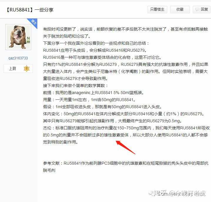 qaz3163733这个小号很没下限,在打假之前发了两个帖子,一个是使用AG的RU58841的卓有成效的记录帖子,另一个是用数据分析了RU58841使用后对人体不会有多大副作用的帖子。