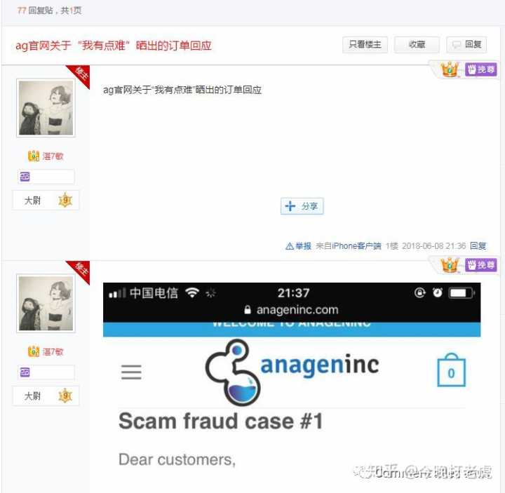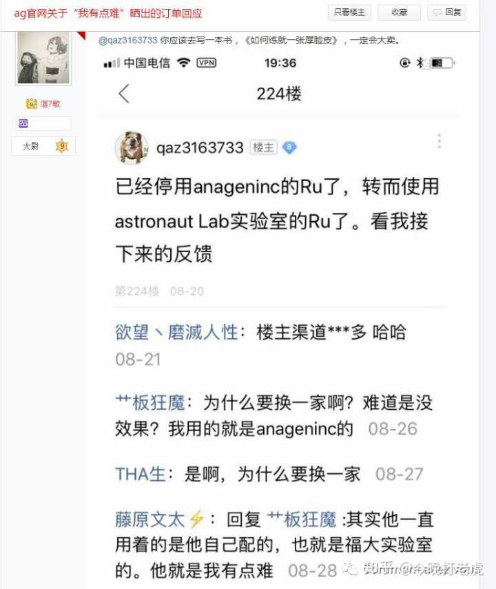 在销售Anageninc的RU58841时就说AG是全球最大的RU销售商,口碑与质量颇好。现在不想做了就用小号改口在网上宣扬AG是三无公司?国外网友都是傻逼咯(详情见前文RU58841市场下的无耻之徒)