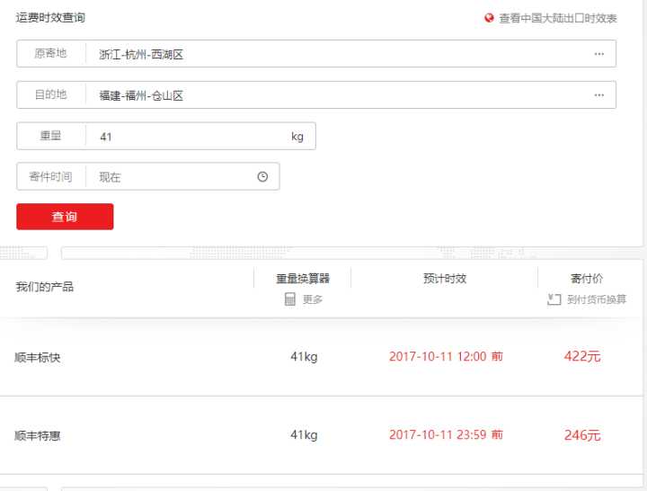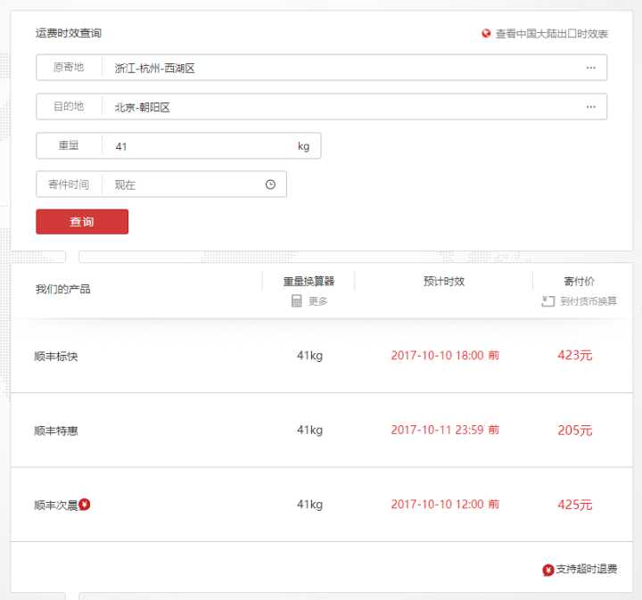 顺丰邮费在线查询:运费及时效查询