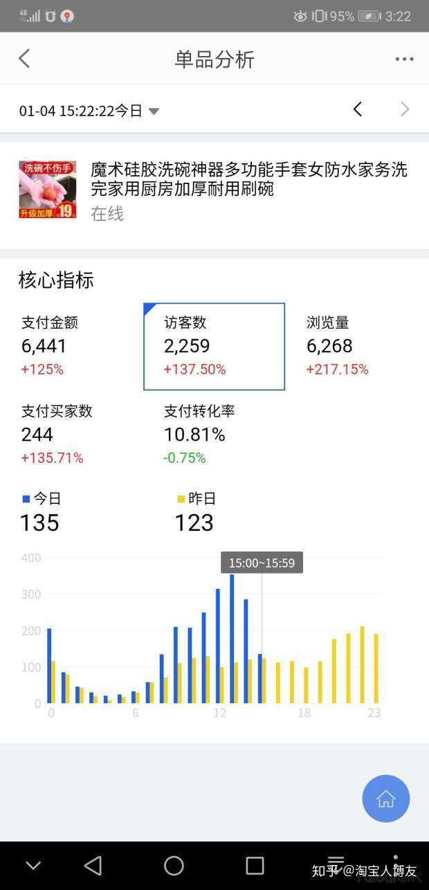 除此之外,平台对你全天不同时段的位置分配,也受到前面几天的影响,比如前面你每天的成交是在上升的,那么系统也会根据数据拟合结果,给出明天你预期能够拿到的搜索流量,所以,哪怕你今天上午实时成交好,导致搜索异常的高,可能到了下午你还这么操作,就发现搜索反而更差了,因为一天的总访客数应该是在平台限定的一个范围之内的。