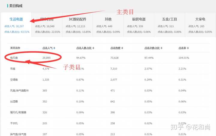 就好比你是做电风扇的,你要看清你的主类目以及子类目的流量。如果每个子类目的流量都是不一样的。