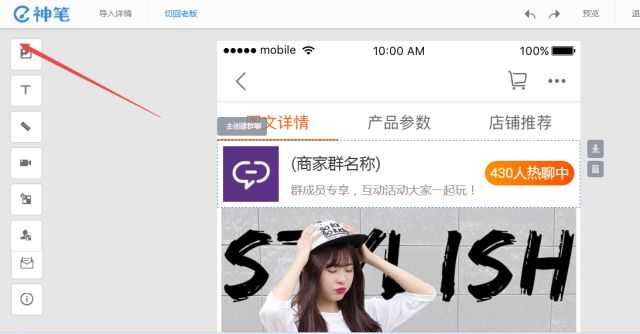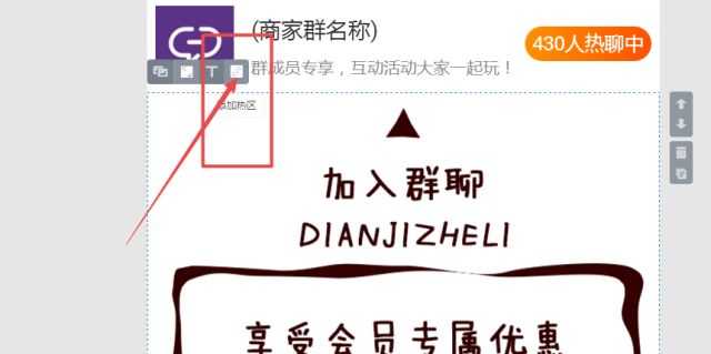 类似于这种形式买家可能更愿意加入群聊,这种形式我们只需要在神笔详情装修添加图片插入热点即可。