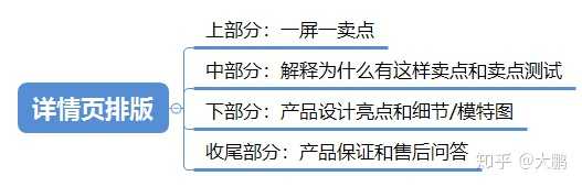 关于详情页的排版,每个产品要表达不同的内容就会有不同的表达形式,而且在网上搜,一搜一大把,下面这张图是我自己总结的通用排版: