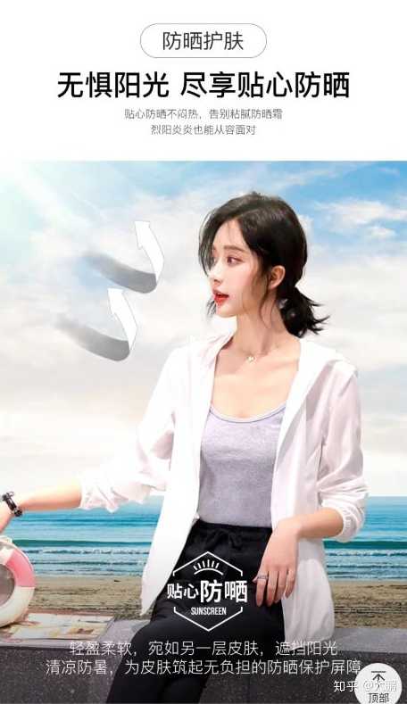 同时需要注意的是,我们要展示的卖点,一定需要跟图片相结合,比如上面那一屏要表达防晒,那么图片一定是需要给人在阳光下的感觉,同时这张图片也设计了阳光反射的效果,所以这图片是很不错的一张卖点图。总结说就是如果我们要表达防晒,图片就要给人在太阳下防晒的感觉;如果要表达速干,那么图片就要给人一种轻快凉爽的感觉,图片跟表达卖点一定是相结合的。
