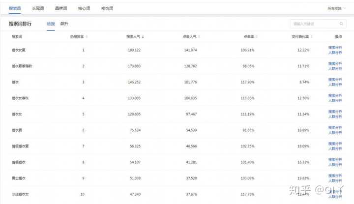 通过热搜词搜索排行,可以了解到现阶段什么风格属性的产品热销,可以重点从这方面去操作,这方便我们进行后面的数据筛选。