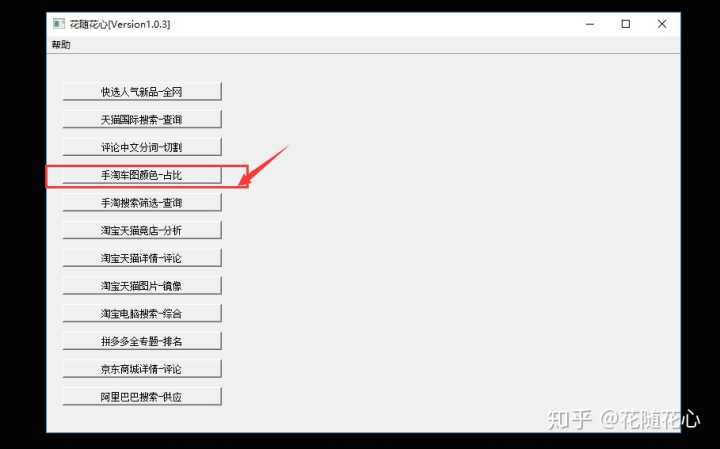以上内容,看起来简单,但实际上如何才能批量下载车图,批量分析车图颜色,然后再用PBI来利用这些数据做图表分析呢?放心,花老师之前写的12个免费功能的数据分析工具箱就可以做到,其中第04项功能,叫做【手淘车图颜色-占比】就可以做到,如图所示