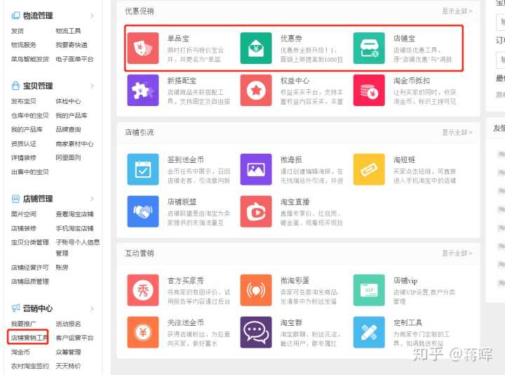 这里建议使用官方工具,打开路径:店铺卖家中心-营销中心-店铺营销工具。