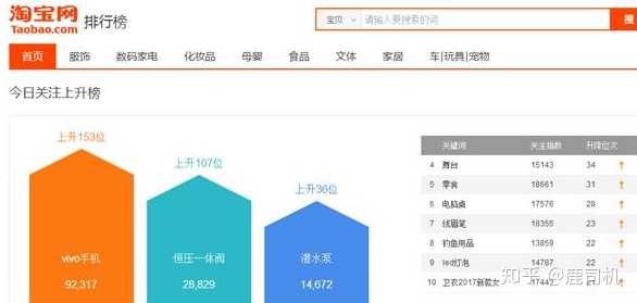 TOP排行榜,展示的是全行业的销量排行商品及类目的TOP店铺,可以从中看见当季热销款式,及热门关键的词,了解整个行业的走向。