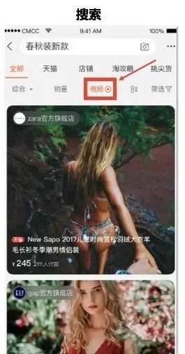 在手机淘宝搜索关键词,当该关键词下满足条件的视频数≥3个时,展现视频的图标,点击图标仅展现有主图视频的商品。