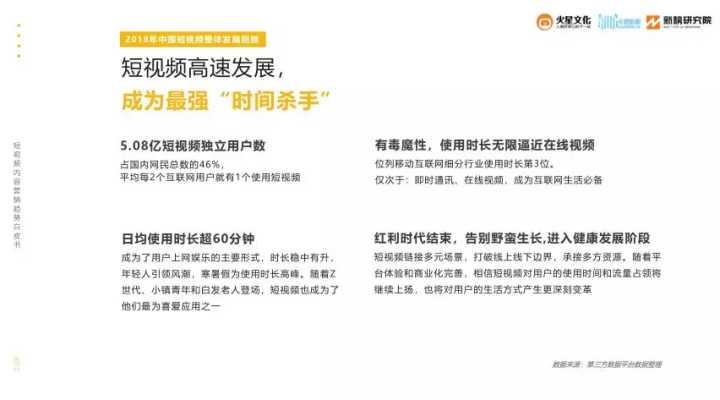 据调研数据显示,截至2018年底,我国短视频用户数已达5.08亿,占国内网民总数的46%;而大家日均观看短视频的时长已超60分钟