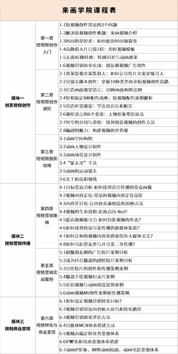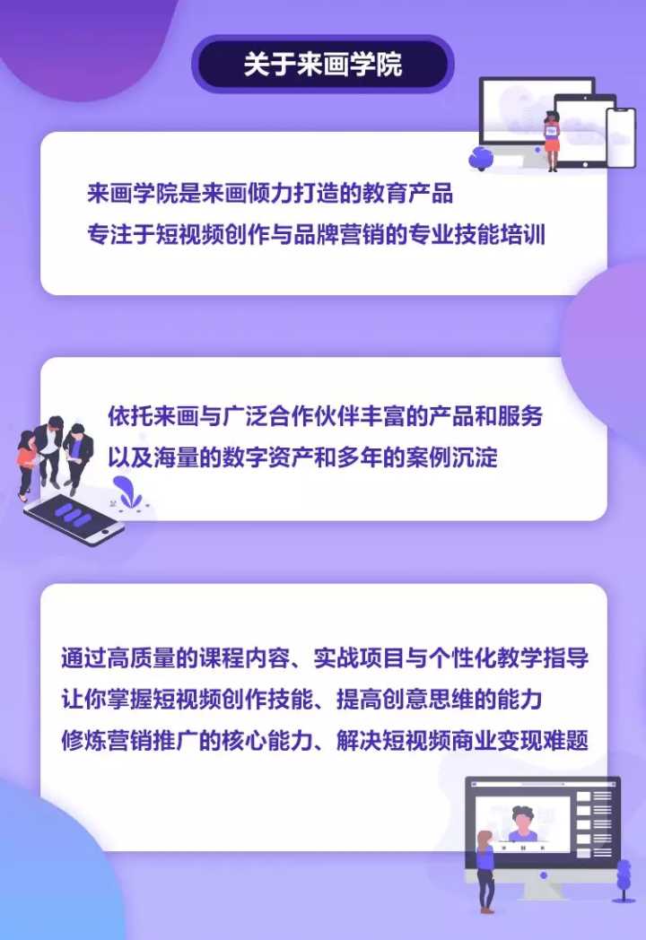 别担心,由来画学院制作的“短视频营销”系列课程已经上线啦,对短视频营销感兴趣、不知道从何下手的企业营销人可以关注”来画学院“,跟着业内资深导师一起学起来。