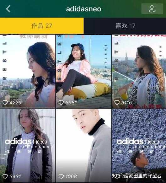 zui后说说这一类别的账号,他们根据品牌调性、消费者需求和平台机制,精心制作相应内容,并加以平台时间流投放,其中代表就是 adidas neo ,以时尚穿搭的生活方式为主题,在抖音精心制作每一期内容,这个值得所有品牌主学习。