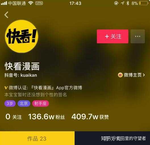 快看漫画,以 2 个漫画人物做为主角,将爱情精心的制作成短视频发布,这个是要值得大家学习的。