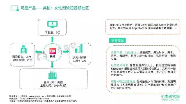 就目前的形式来看,快手、抖音能各顶半边天,但是两者作为独立短视频平台,主打社交,所涵盖的范围有限。在“抖音”还未火之前,“美拍”、“小咖秀”等先行者在短视频领域表现还是十分出彩。2014 年 5 月上线的“美拍”,连续 24 天蝉联 App Store 免费总榜冠军,并成为当月 App Store 全球非游戏类下载量第一。