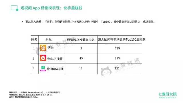 而凭借打赏、上线短视频小游戏等营利手段,快手持续 749 天进入国内总榜(畅销) Top100 ,其中最高排名达到第 3 。吸金能力惊人,并且快手已获 10 亿美元 E+ 融资。