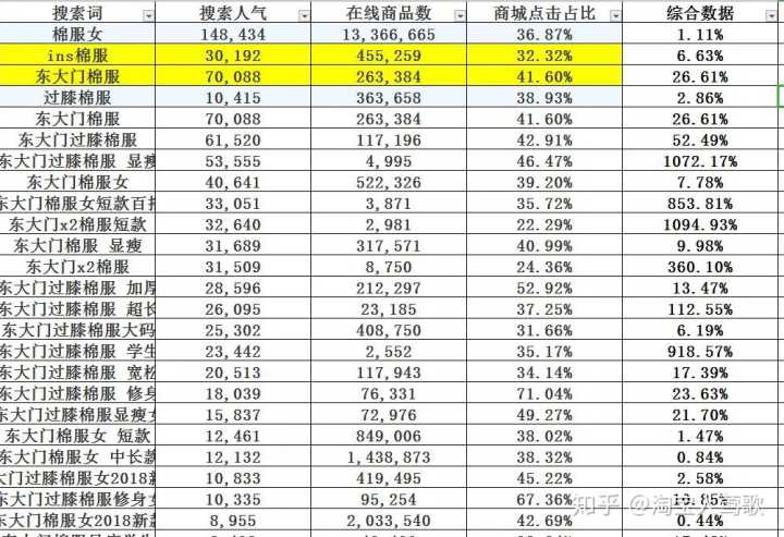 3.商城占比的数据对于在选择关键词时有着非常大的作用。