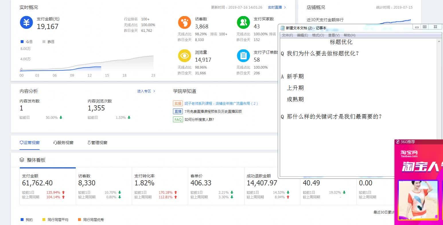 刚做淘宝的人因为店铺没流量,会花很多心思在标题上。可作为新人,什么都不懂。于是就开始听网上课程。