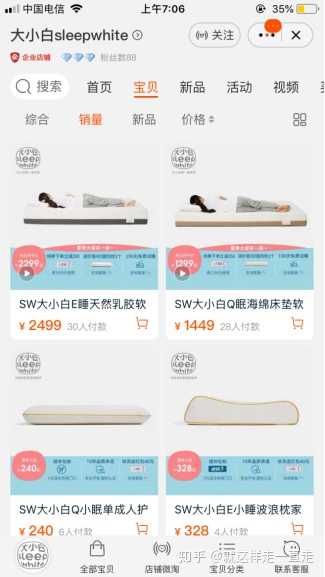 从名字便能看出这是一家贩售睡眠相关用品的店铺,实际上这家店的产品是这几年风特别大的乳胶制品——乳胶枕&乳胶床垫